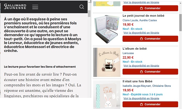 Vous mettez donc "livre pour bébé de 1 an" dans Google, et vous tombez sur ces sites (trouvés en cherchant parmi les résultats de recherche) :